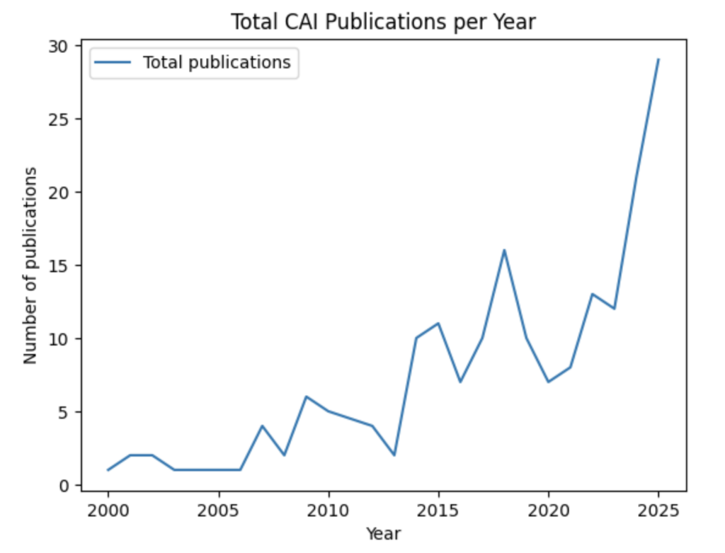 A second major trend concerns research approach and methodology. Until approximately 2014, CAI research is dominated by theoretical and exploratory work. This is unsurprising: before robust tools existed, empirical evaluation was difficult to conduct meaningfully.