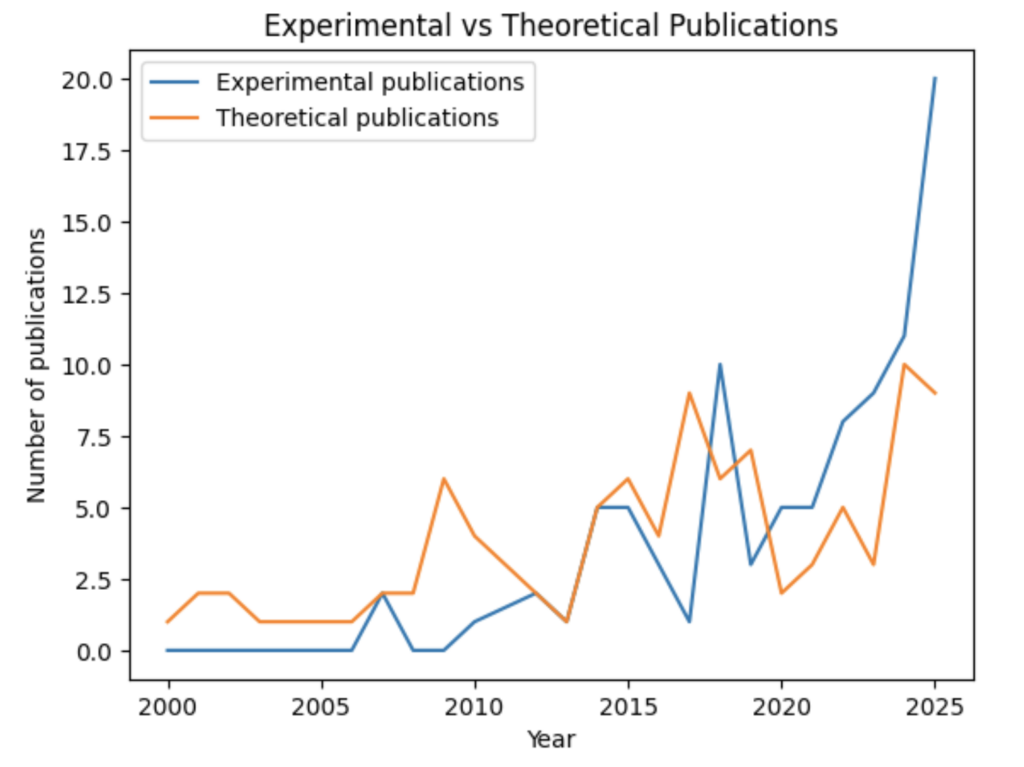 A clear shift occurs after the mid-2010s, and becomes unmistakable from 2018 onwards. As fig 1. shows, annual publication numbers increase sharply, reaching unprecedented levels in 2024 and 2025.